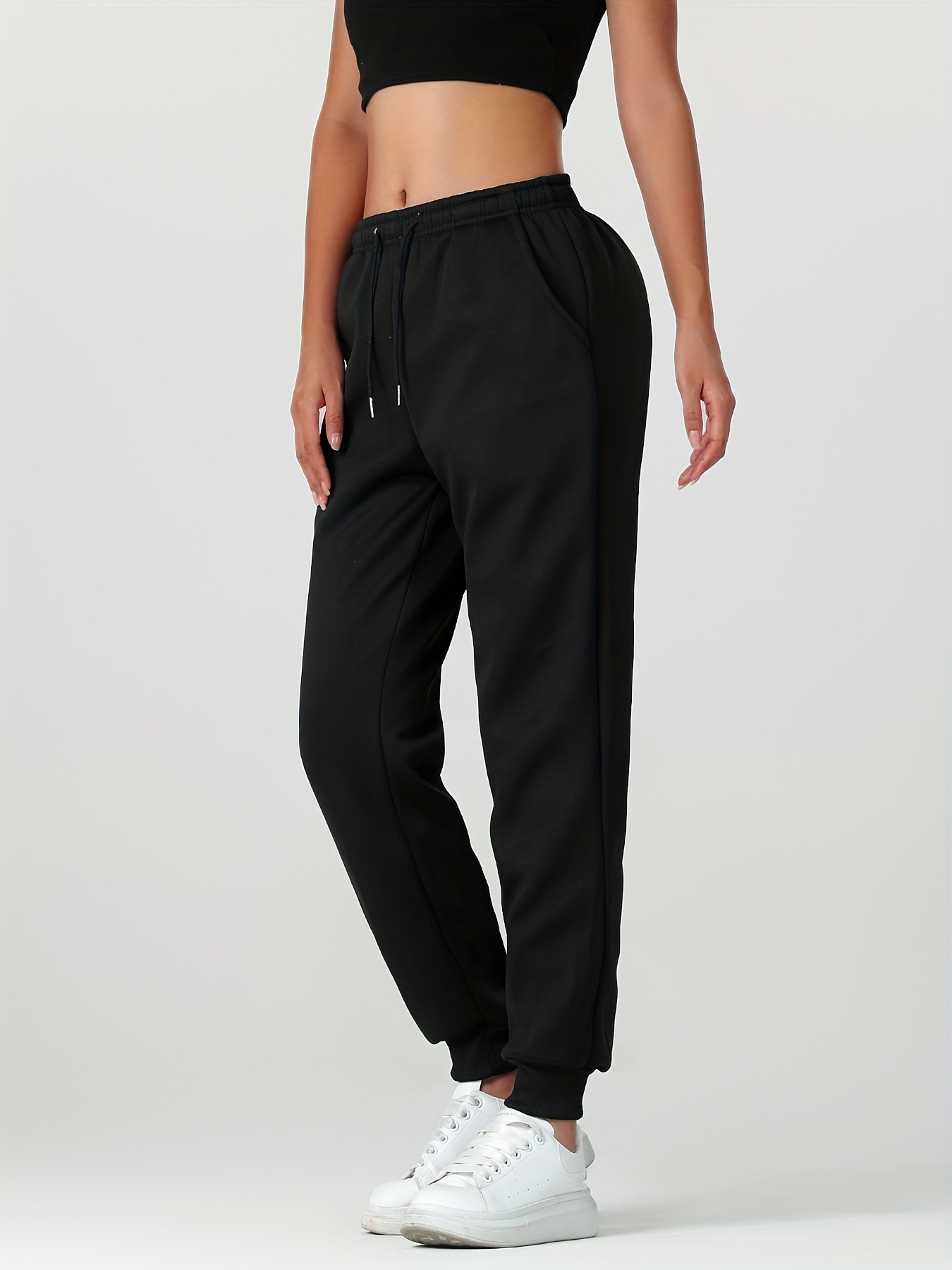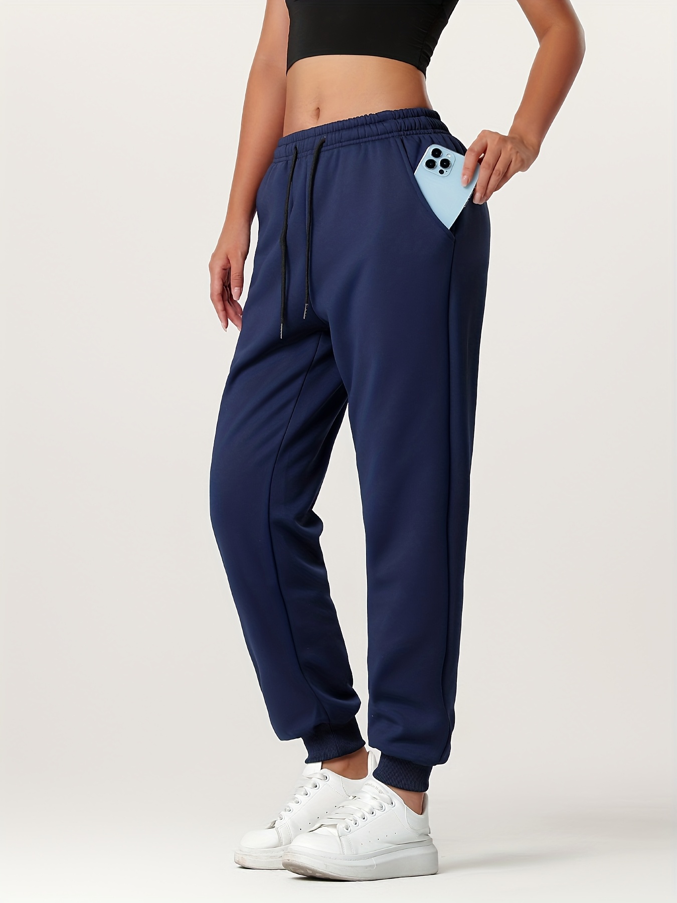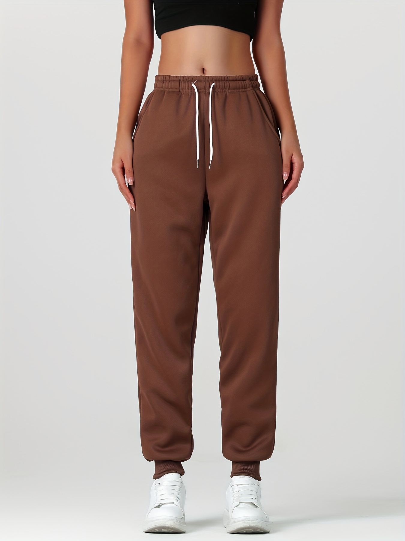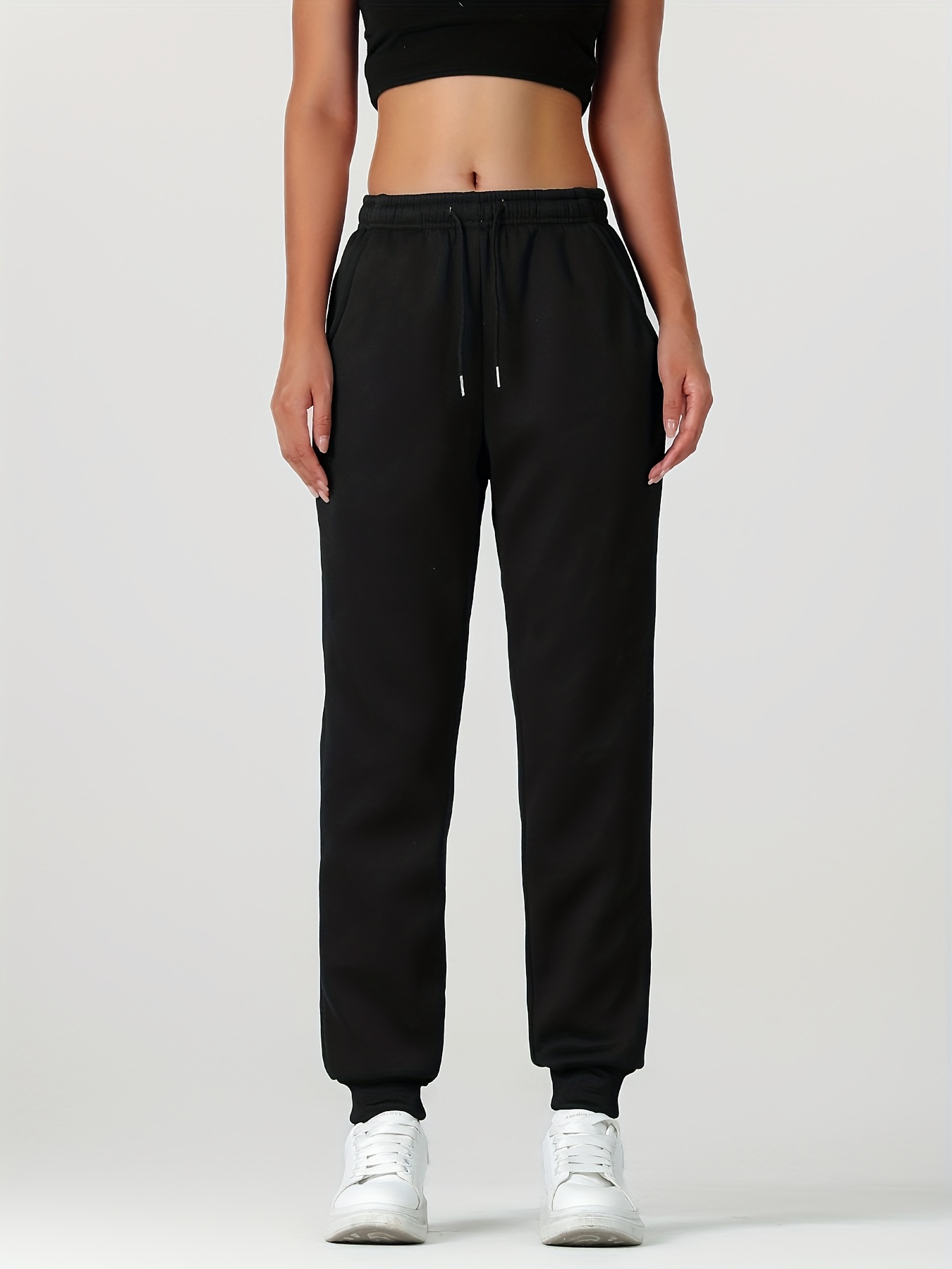 1pc Autumn Winter Women's Long Pants, Fleece-Lined Warm Casual Sports Trousers with Elastic Drawstring Waist, Slant Pockets, Windproof Thermal Cuffed Pants for Winter Daily Home Outing Hiking Leisure Wear