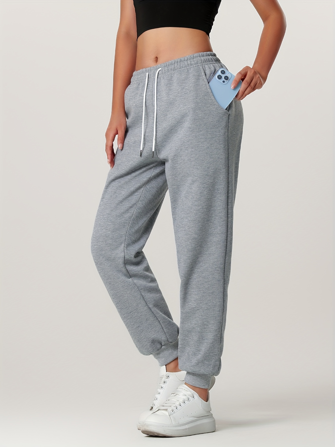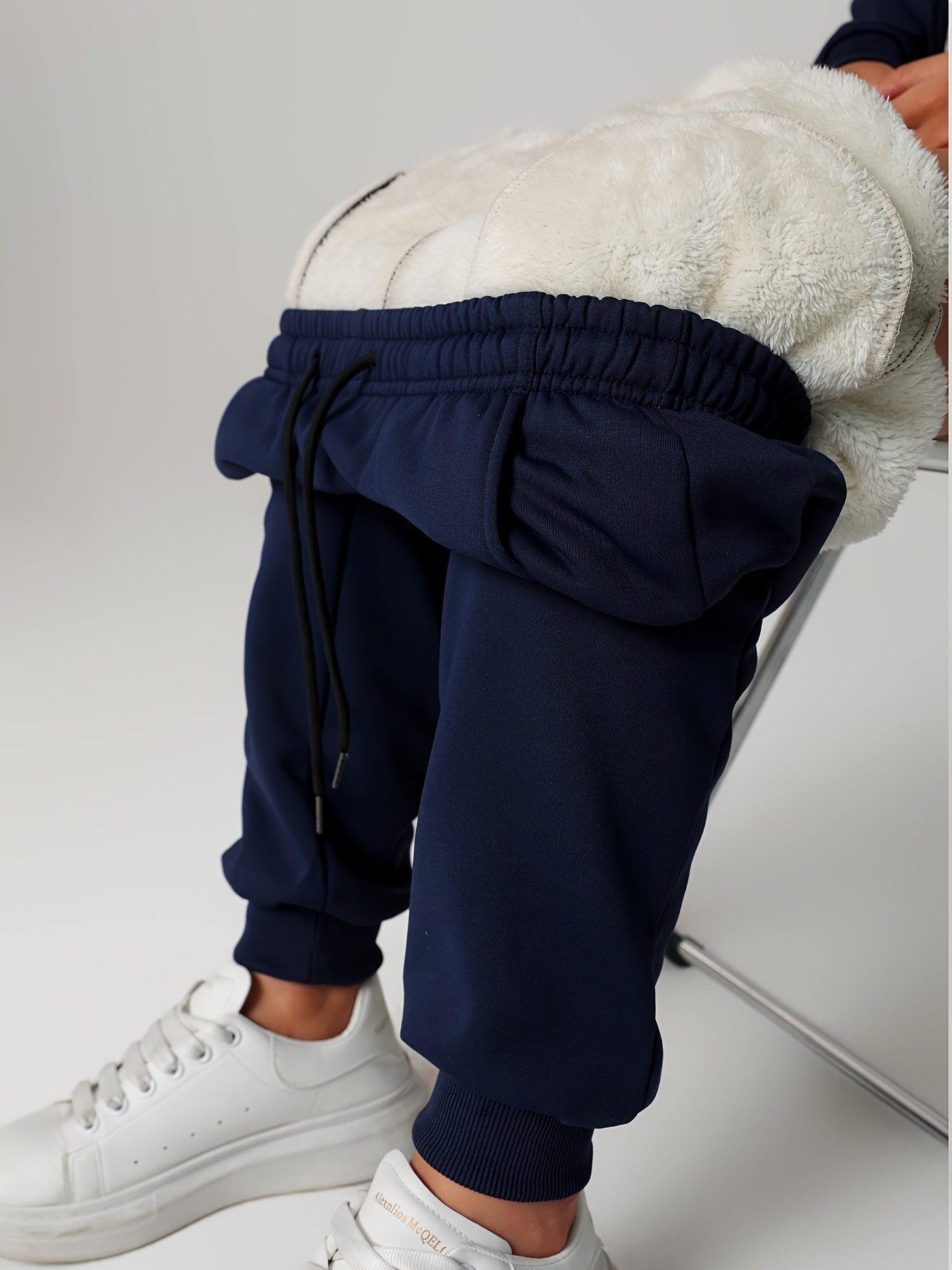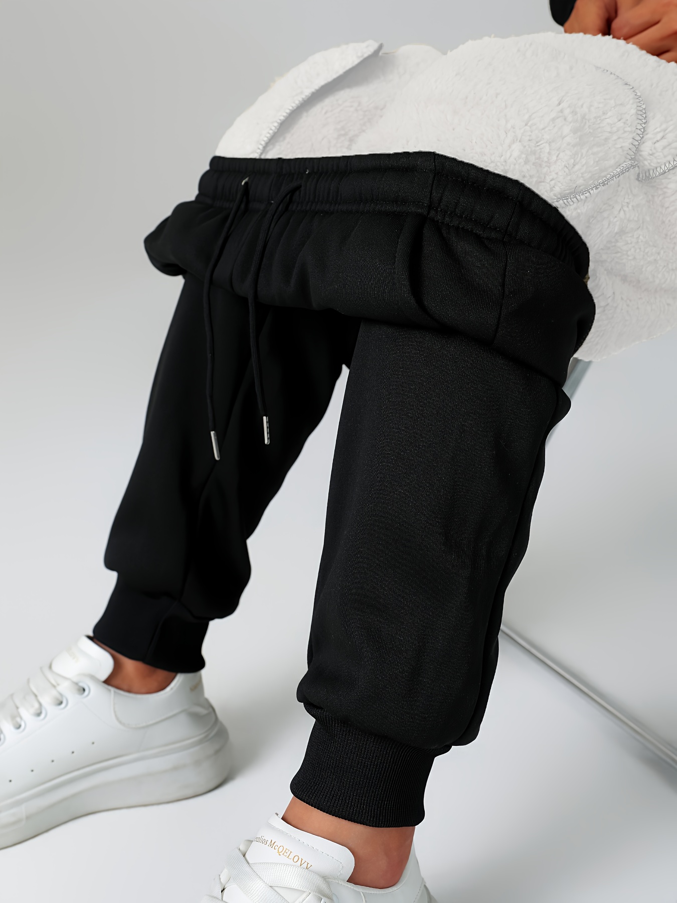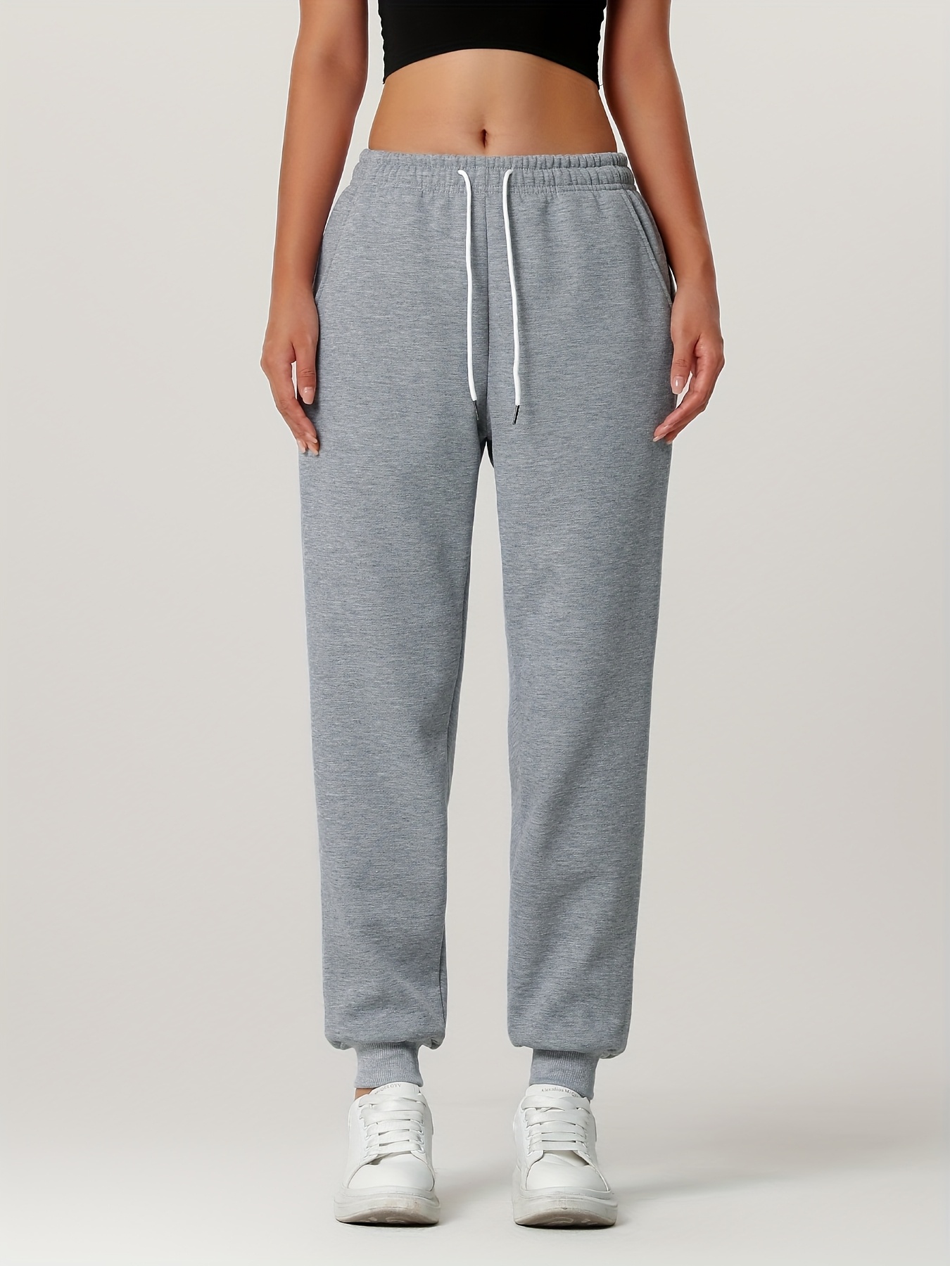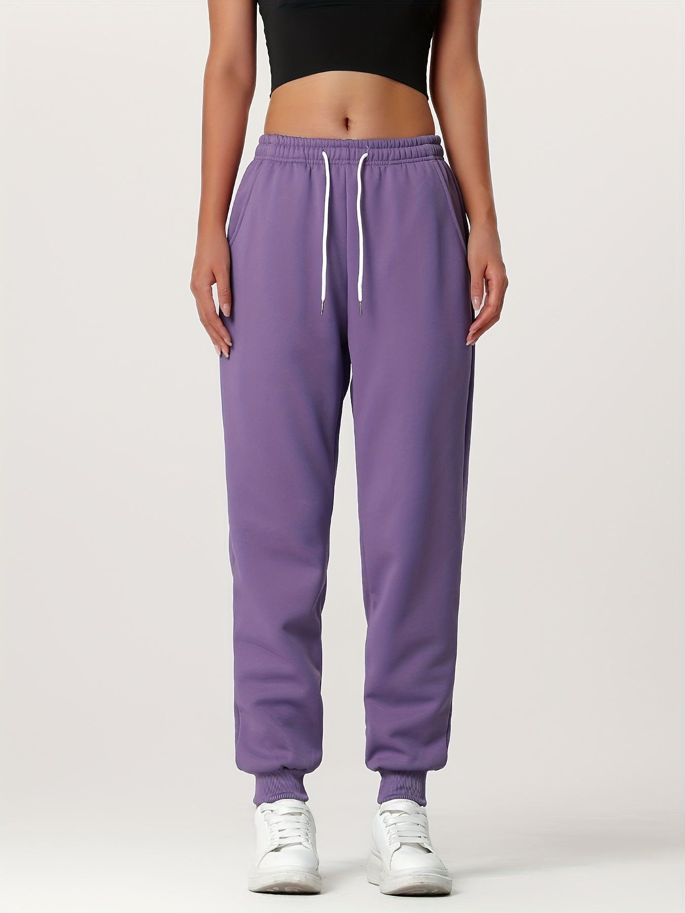 1pc Autumn Winter Women's Long Pants, Fleece-Lined Warm Casual Sports Trousers with Elastic Drawstring Waist, Slant Pockets, Windproof Thermal Cuffed Pants for Winter Daily Home Outing Hiking Leisure Wear