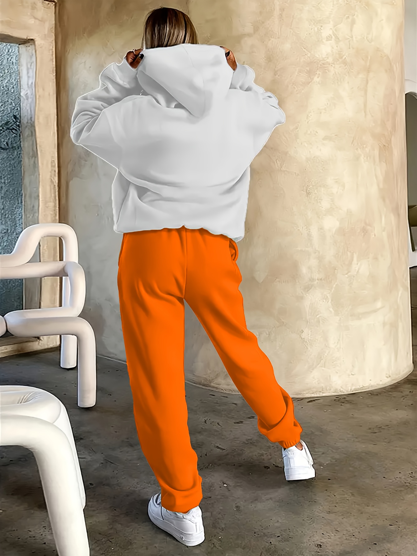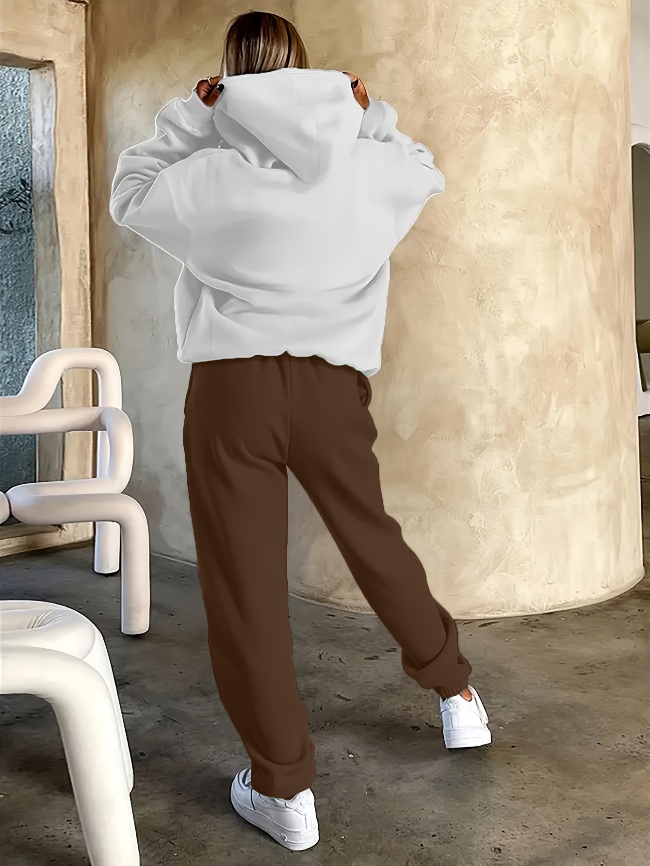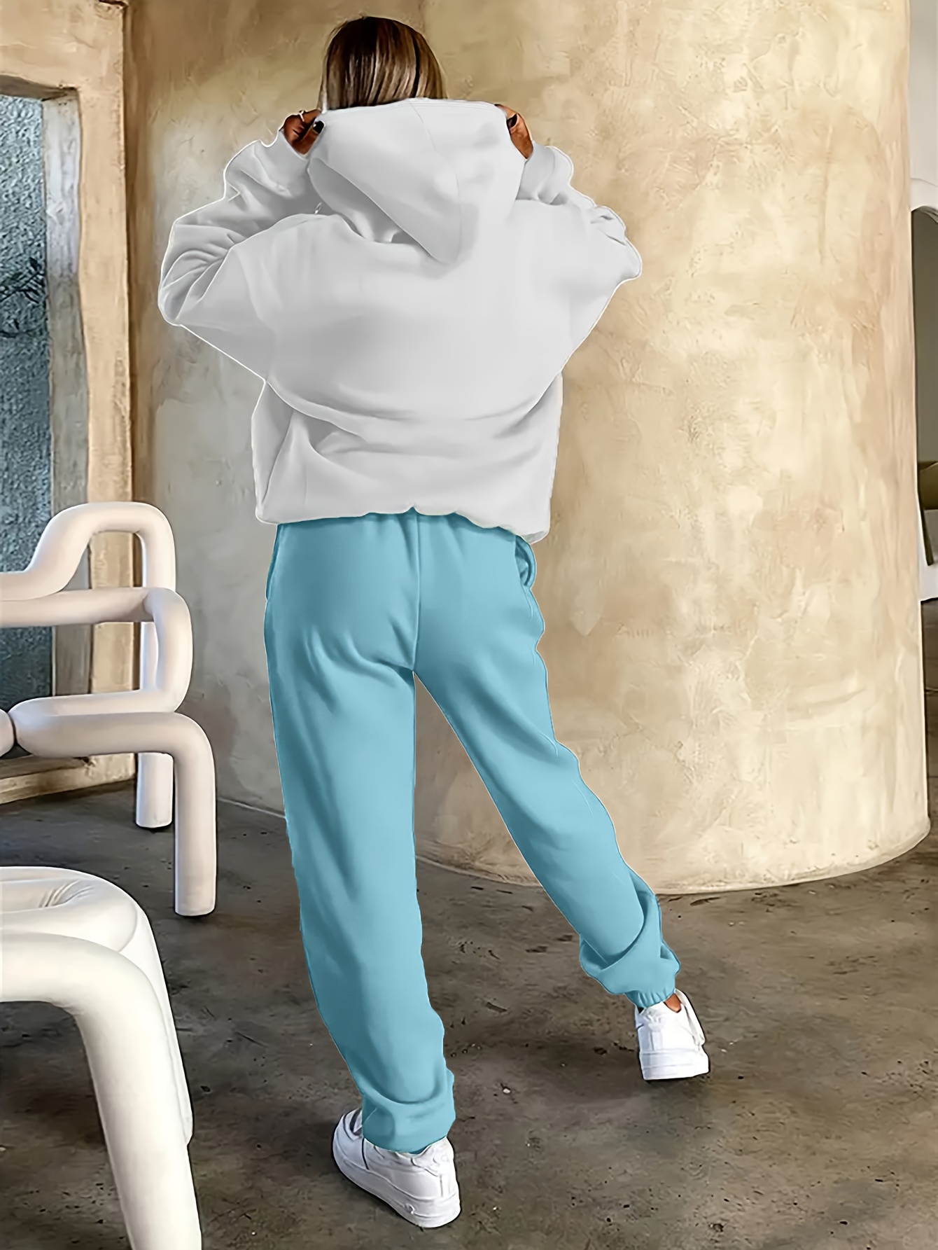 2025 Autumn/Winter New Arrival, Rider and Horse Pattern, Casual Letter Print Loose Warm Long Sleeve Hooded Sweatshirt and Drawstring Pants Women'S Two-Piece Set, Winter Clothing, Casual Wear, Trendy Outfit, Hooded Sweatshirt,