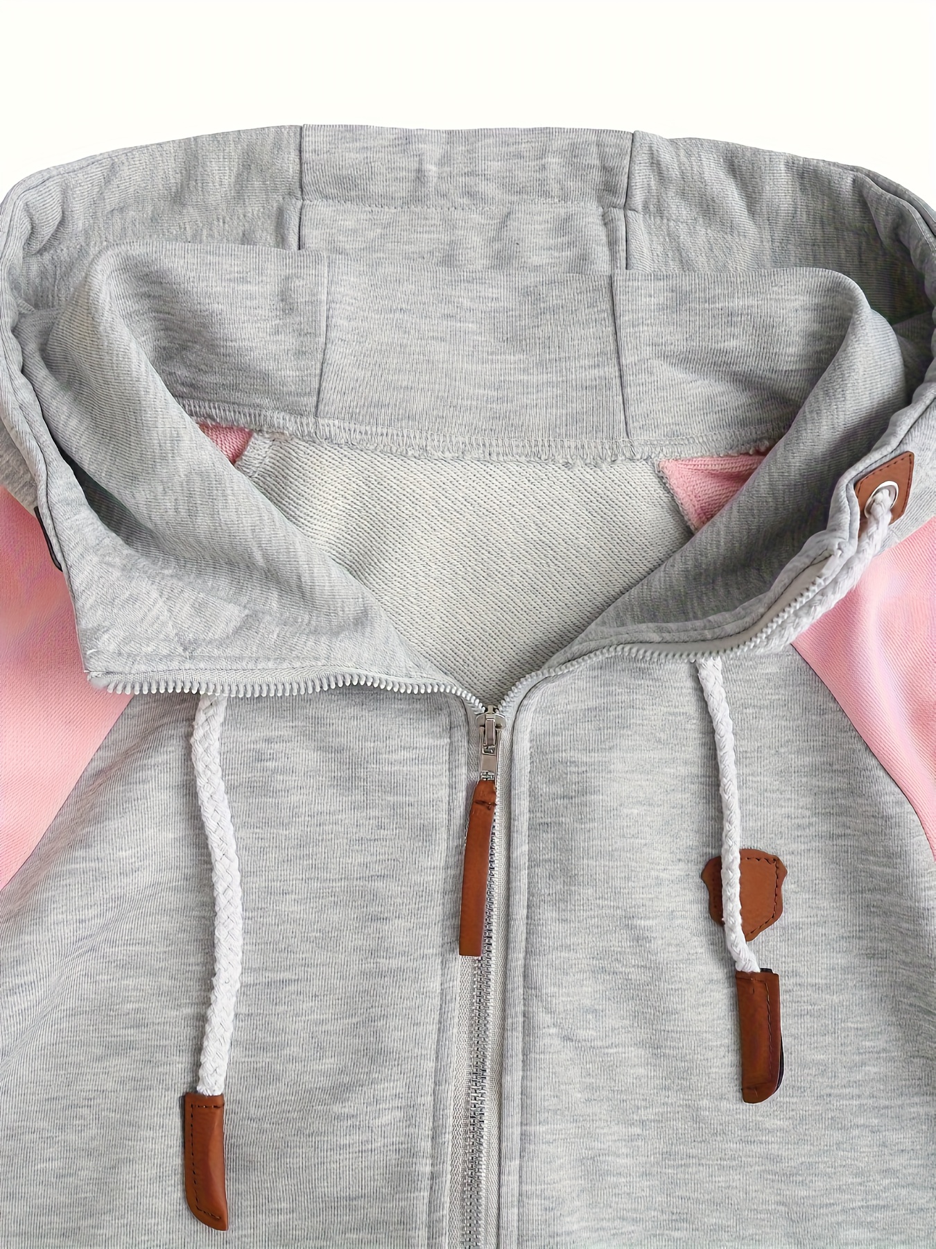 European and American Fashion Autumn and Winter New Women's Hoodie Casual Jacket Zipper Mixed Color Women's Coat Top Sweatshirt, Streetwear Fashion, Casual Wear, Trendy Sweatshirt, Stylish Outerwear, Soft Texture, Durable Fab
