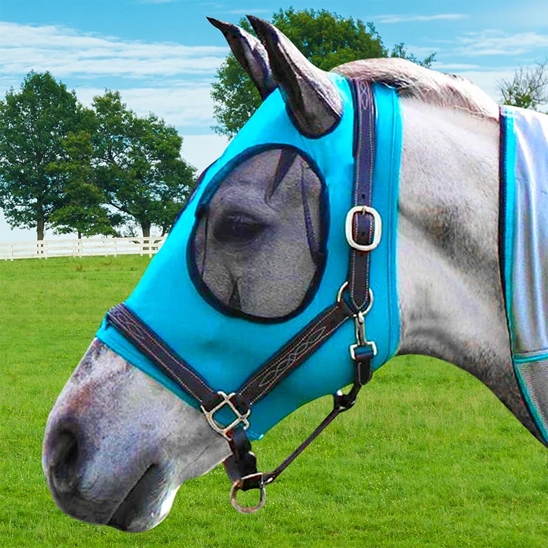 Lightweight Comfortable Horse Fly Mask with Ears Protects the Horse From Insects Dust Irritants