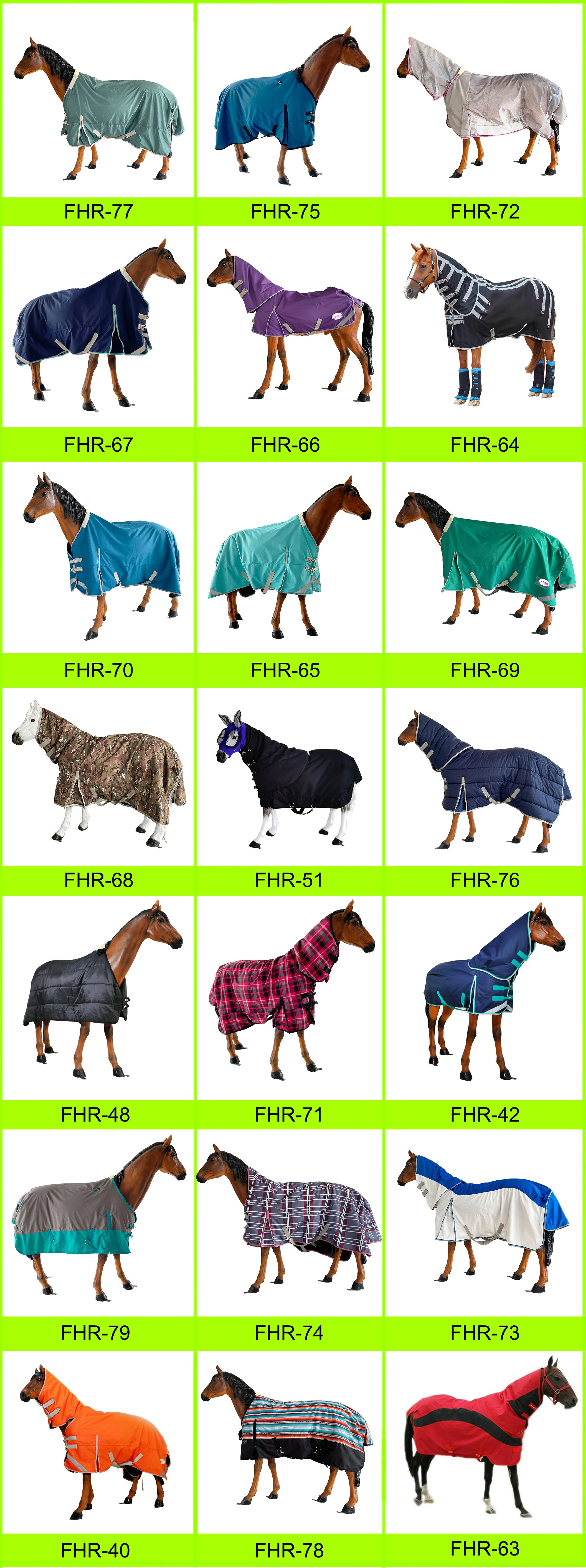 | Keep your horse warm, dry and clean while out in the field | Keep your horse warm and clean while stabled | Help horses cool down and dry off after exercise | Keep your horse warm and dry while being ridden | Protect your horse against insect bites |
