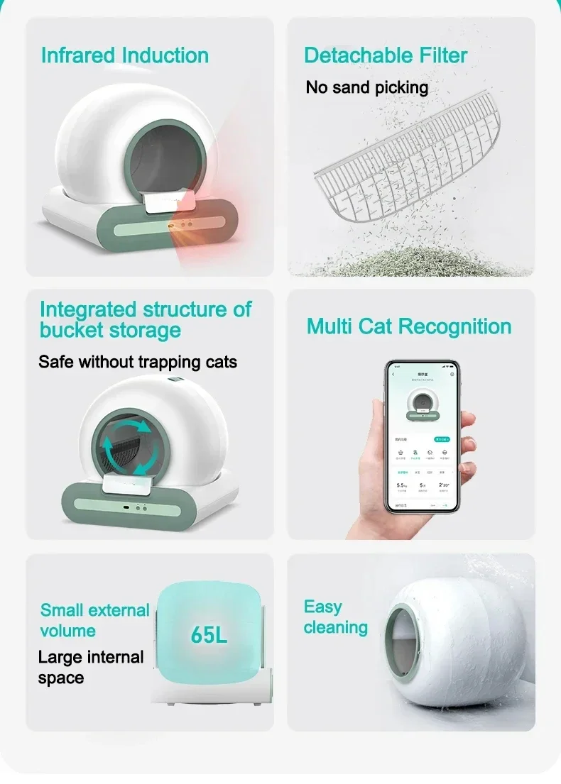 Model Number: Ti Automatic Cat Litter Box APP Control Detachable 65L Smart S,Automatic Self cleaning cat litter box