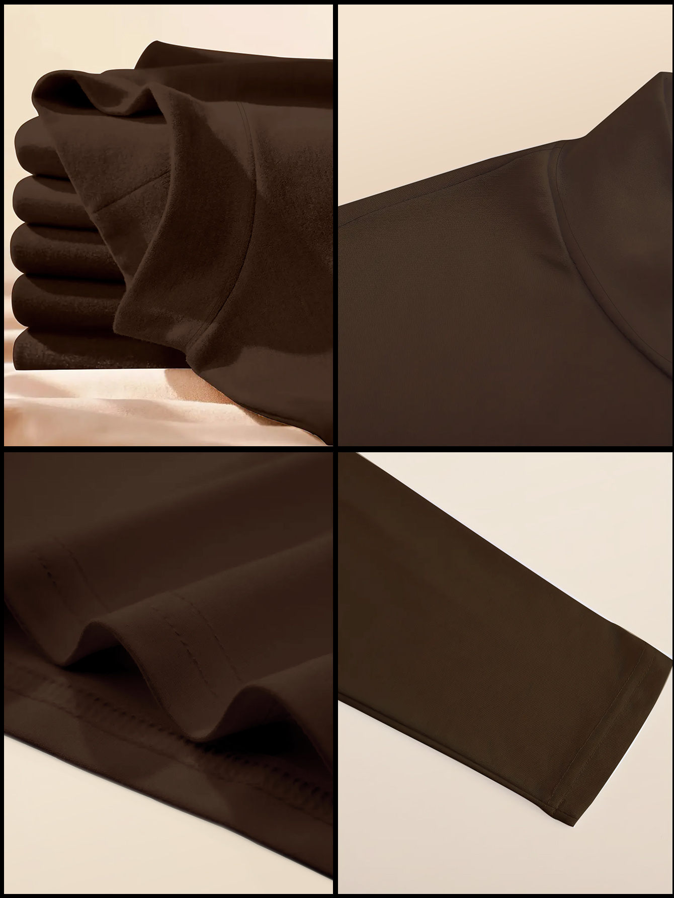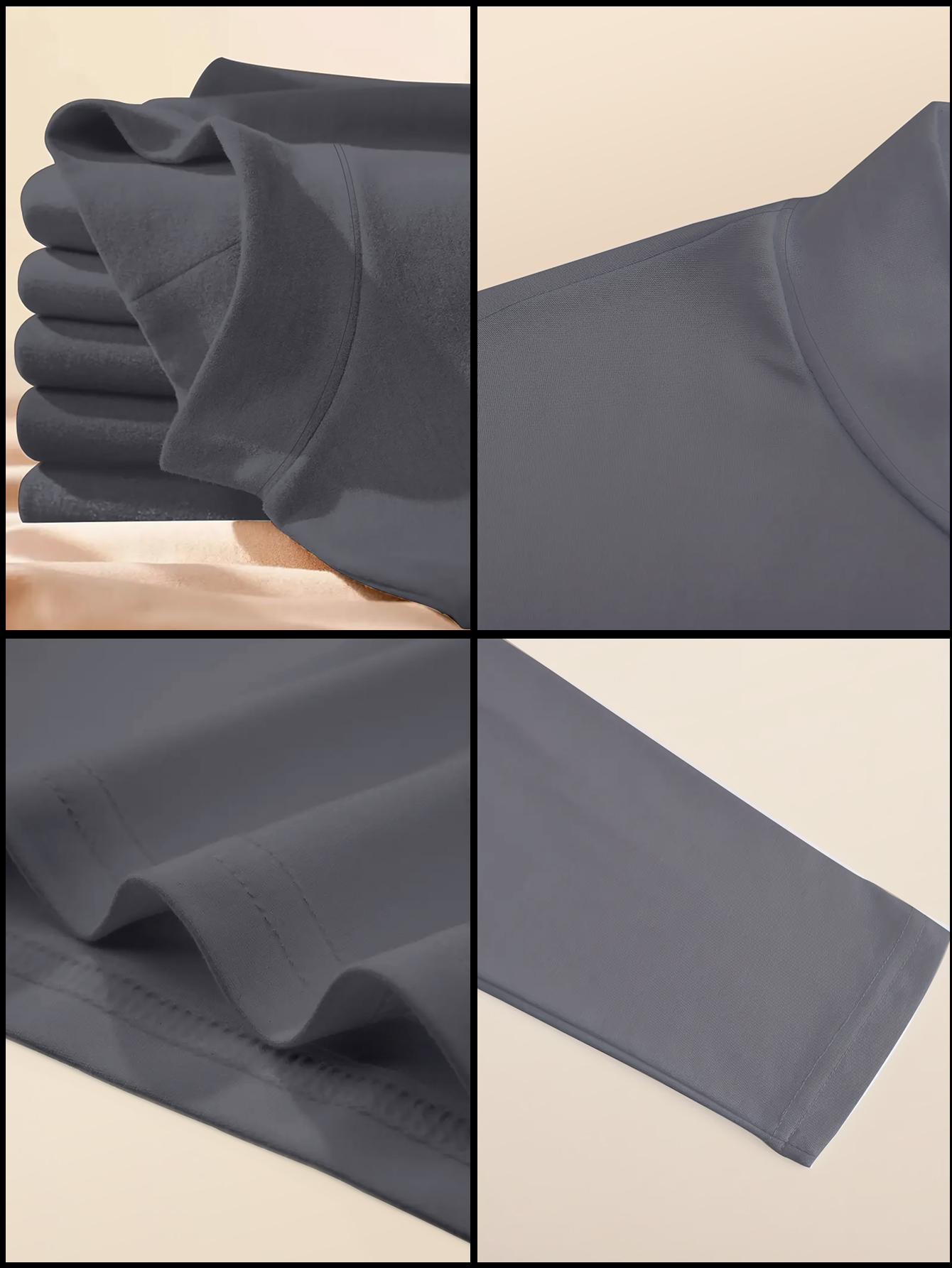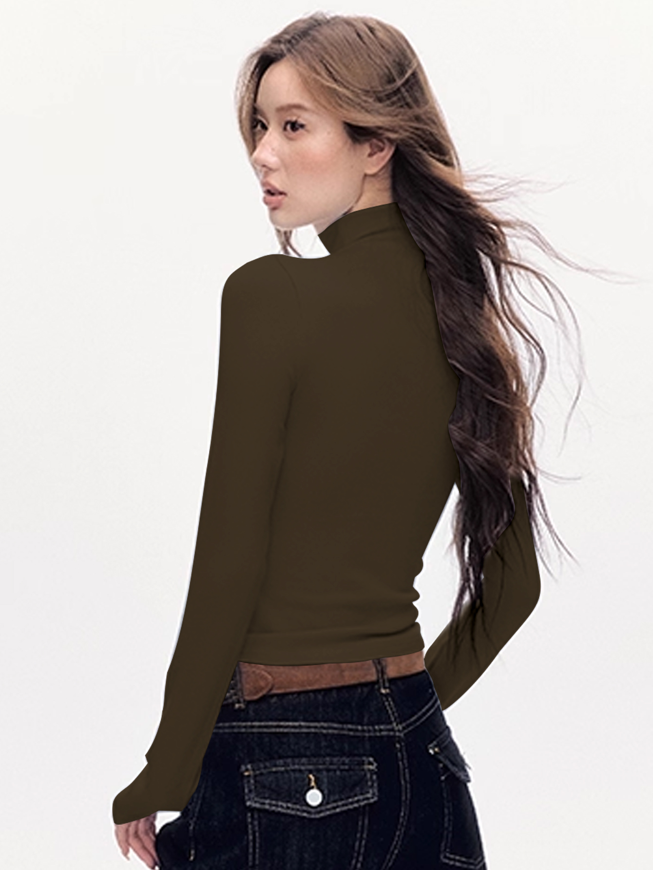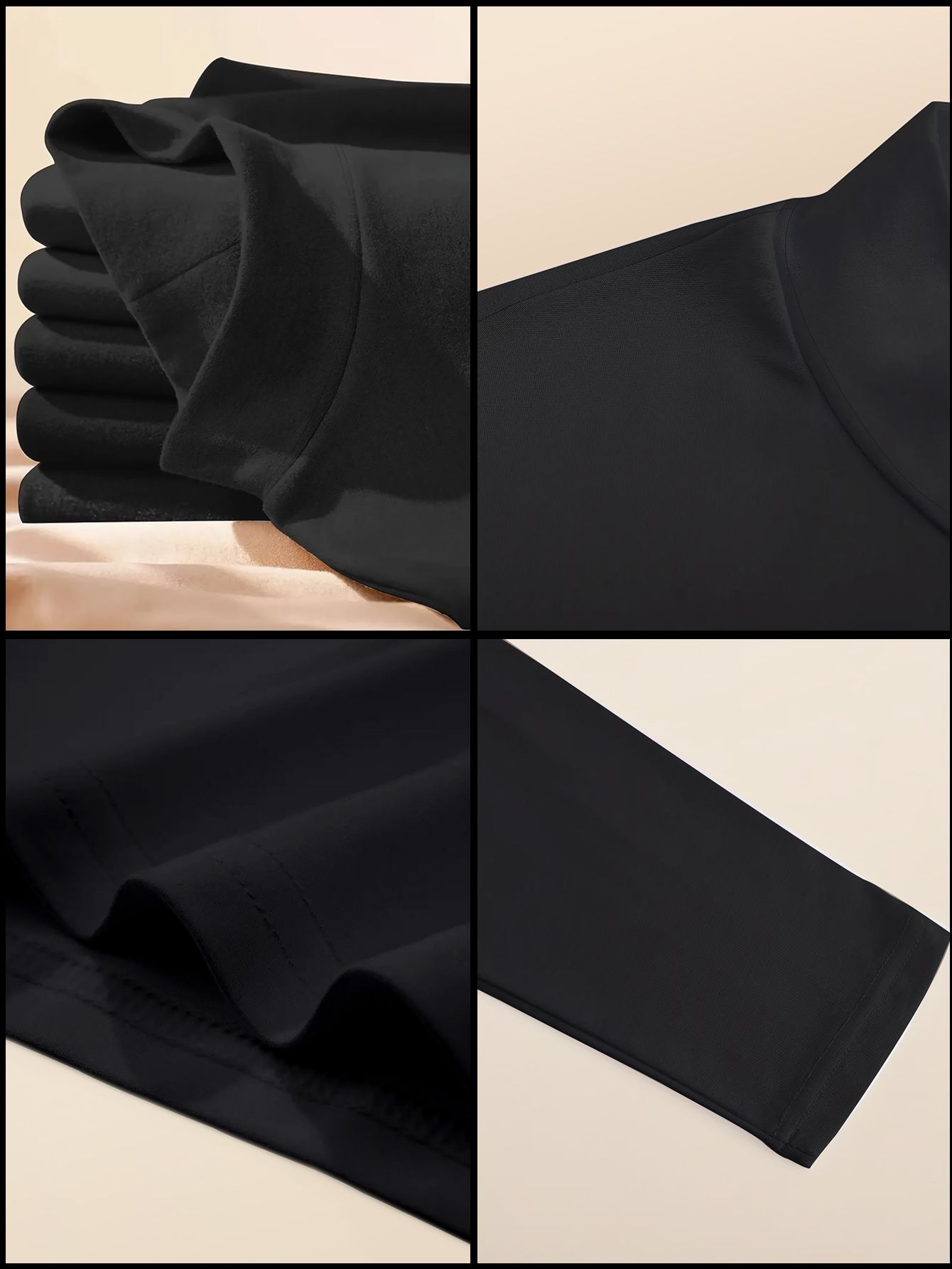 Women'S Elegant Half-Turtleneck Long Sleeve T-Shirt - Soft Fleece-Like Fabric, Black with White Horse Silhouette & Golden Accents, Machine Washable, Versatile Casual & Formal Wear, Winter Warmth, 2025 Autumn Winter Essential,
